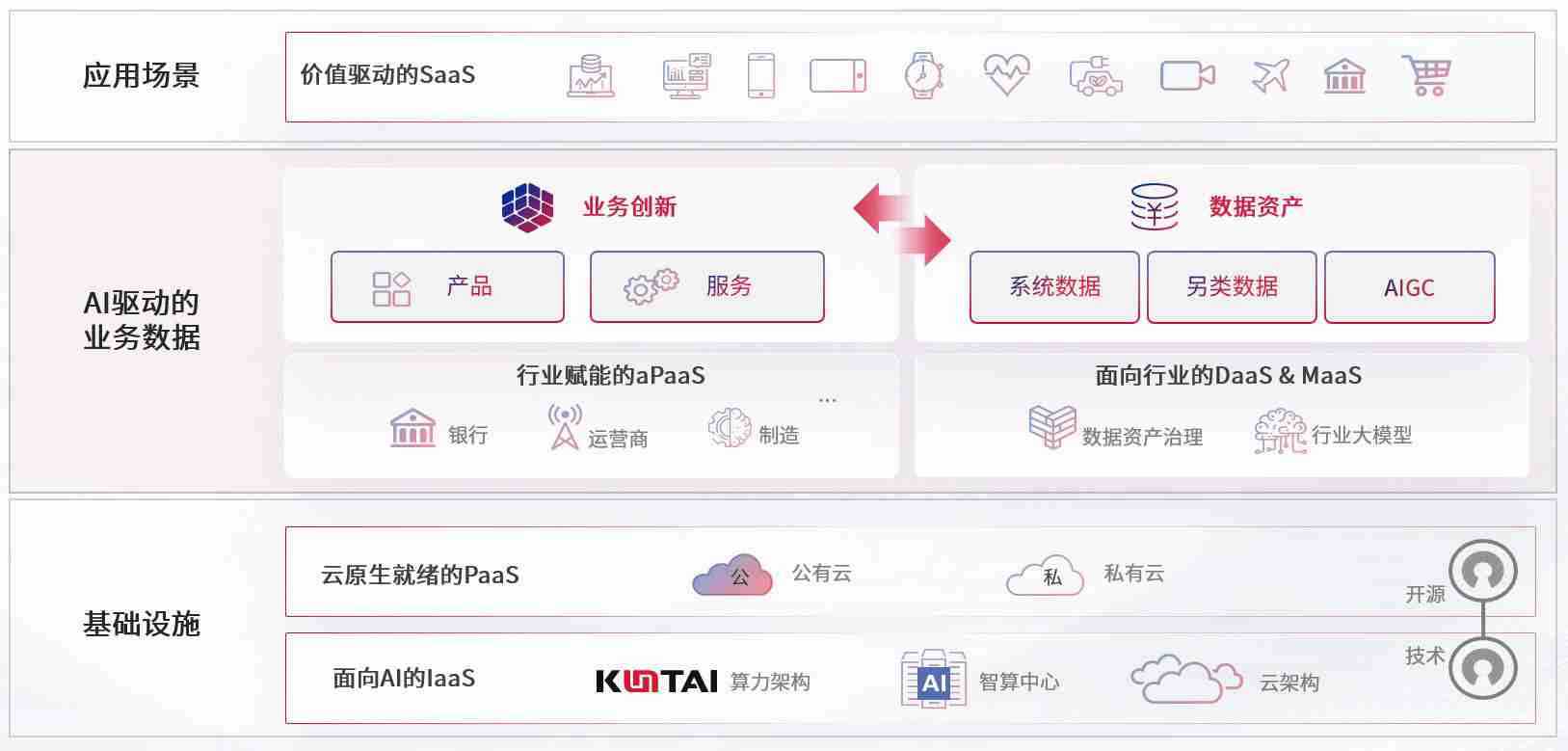数字时代,,,,围绕企业数字化转型的关键要素,,,,leyu.com数码开创性的提出数云融合战略和技术体系框架,,,着力在云原生、、、、数字原生、、、、AI原生和信创产业上架构产品和服务能力,,,为处在不同数字化转型阶段的快消零售、、、、汽车、、、、金融、、医疗、、、、政企、、、教育、、、运营商等行业客户提供泛在的敏捷IT能力和融合的数据驱动能力,,,,构建跨界融合创新的数字业务场景和新业务模式,,助力企业级客户建立面向未来的核心能力和竞争优势,,,全面推动社会的数字化、、、、智能化转型升级。。
